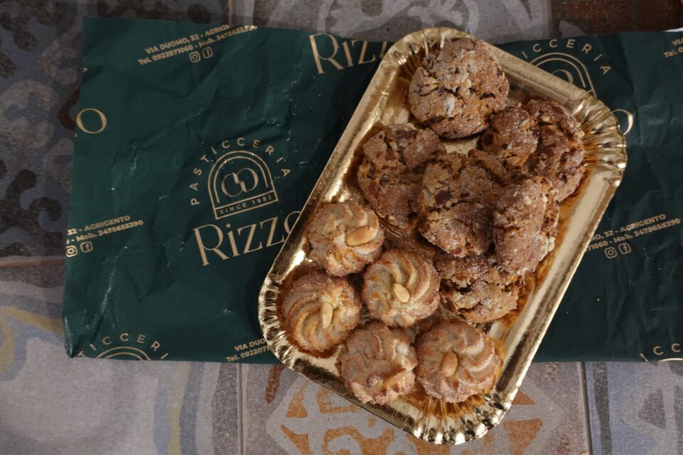MARCH 22–24, 2025: We arrived at our Airbnb in Agrigento on Friday afternoon. Our host had generously stocked the apartment with food – eggs, bacon, cheeses, and a large assortment of snacks. It was thoughtful and kind, but not particularly useful for us. She also left a small tray of fresh pastries from Pasticceria Rizzo, one of Agrigento’s best-known Sicilian pastry cafés, family-run since 1982. On the tray were ricci di mandorla (“almond curls”) – a local favorite made with finely ground almonds, crisp on the outside and soft in the center, and almond amaretti, a classic Sicilian confectionery. Those I appreciated.