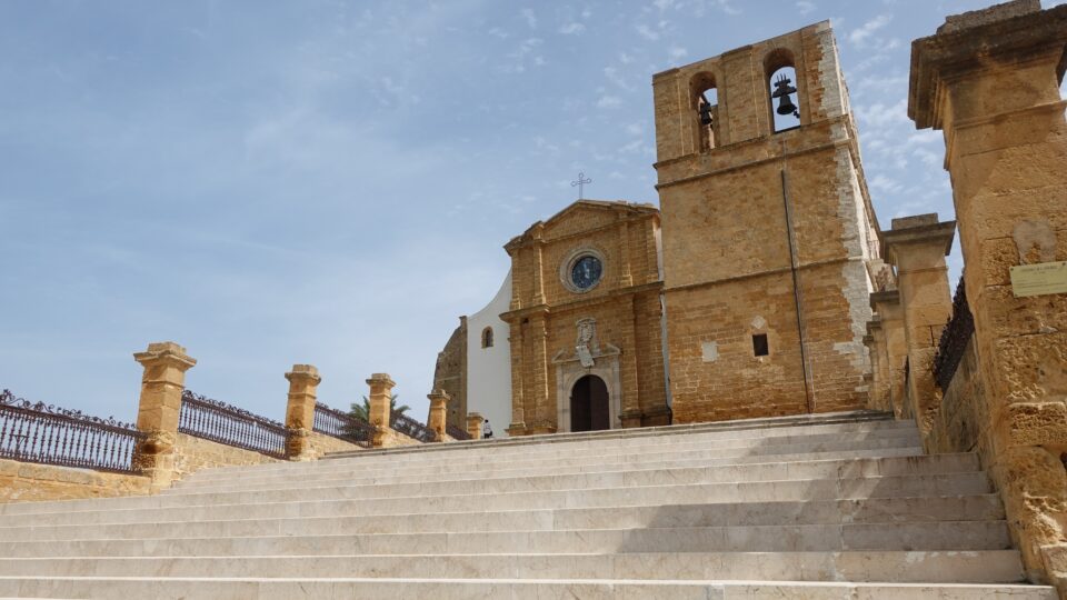 From there, we climbed up and up and more up through the city’s steep stairways to the cathedral at the top of the hill, emerging onto Via Duomo. Agrigento’s cathedral—the Cathedral of San Gerlando—perches high at the very top of the old town, and from there we got a beautiful view of the hills of Sicily.
